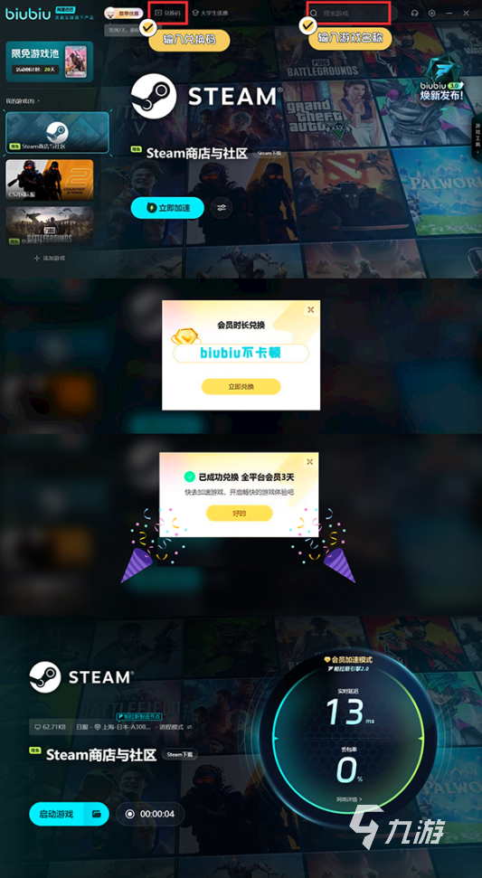 玩家需要在Steam平臺下載本作時,可以點擊上方的鏈接下載biubiu加速器,因為biubiu加速器可以確保玩家下載時的網(wǎng)絡環(huán)境問題,讓我們更加穩(wěn)定的下載,而且biubiu加速器現(xiàn)在不僅有個新用戶下載能享受24小時的免費體驗時長的活動,新老用戶還均可以使用兌換碼【biubiu不卡頓】額外再得3天免費時長。