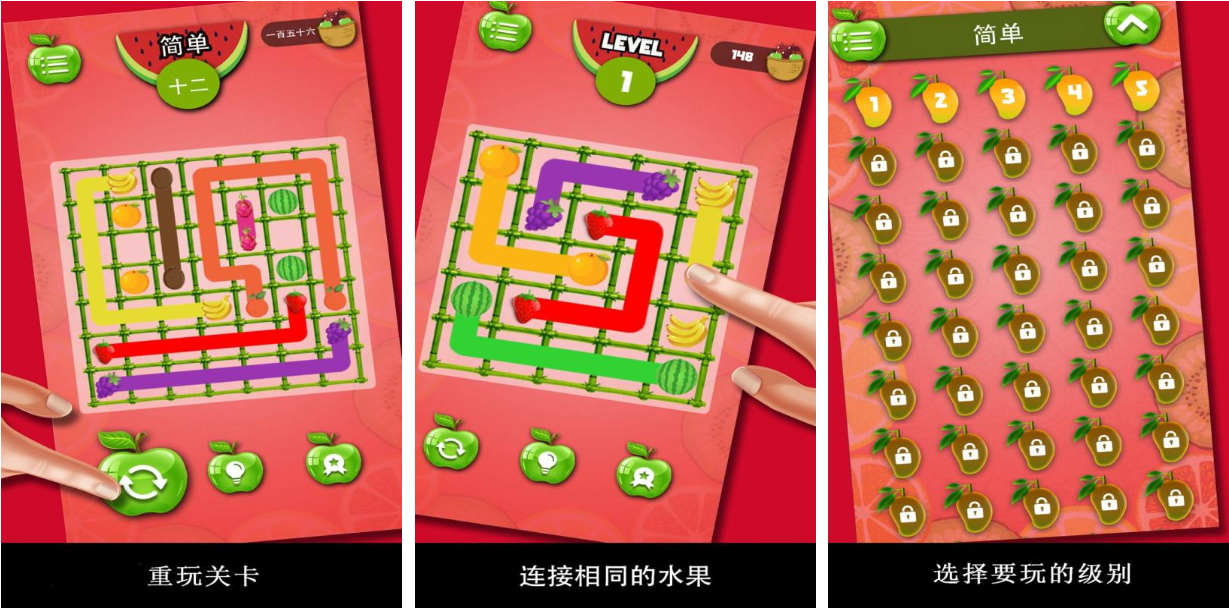 水果橋也是款跟水果相關(guān)的連線闖關(guān)類游戲,點觸屏幕上的水果可連接成各種顏色的線條,只要線條不發(fā)生交叉就可以順利度過關(guān)卡,簡單有趣的連線闖關(guān)玩法和清新的美術(shù)風(fēng)格都是本作亮點,各種輔助道具的加入提高了這款水果游戲的容錯率,關(guān)卡模式也眾多可讓玩家盡情享受連接水果消除帶來的爽快感。