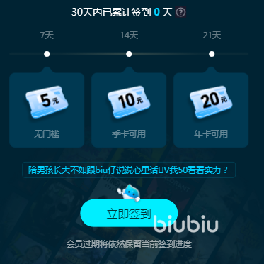 對于價(jià)格問題大家也不用擔(dān)心,biubiu價(jià)格很實(shí)惠,月會員只需花費(fèi)一杯奶茶的費(fèi)用。如果你是新用戶,還能享受到最低15元起的充值優(yōu)惠。而老用戶也可以堅(jiān)持參加簽到領(lǐng)取優(yōu)惠券的活動(dòng),最低只要簽到7天就能領(lǐng)取5元的無門檻抵扣券,實(shí)實(shí)在在的省錢。