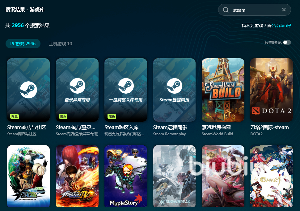 biubiu資源站很強(qiáng)大,全球游戲都在它的加速范圍內(nèi),平臺把每款游戲的區(qū)服都收錄了,想玩什么服都可以。很多小伙伴平時(shí)喜歡在steam上玩游戲,同樣也能先用biubiu加速游戲平臺,啟動(dòng)成功后網(wǎng)速會同步steam,大家玩游戲再也不卡頓了。