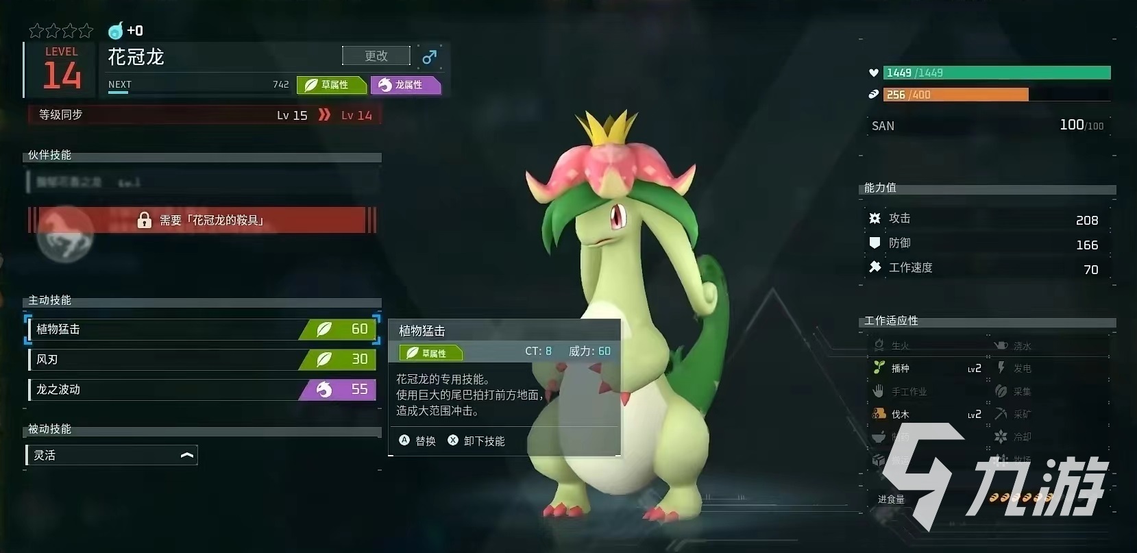 花冠龍的名字和其造型非常符合,頭頂上是一朵盛開鮮花,下面是萌萌的恐龍造型,再搭配上自身淺綠色顏色,是很多女生都喜歡的寵物類型。該寵物的技能特點是在獲取之后能夠用于騎乘,然后在騎乘期間草鼠用攻擊會得到提升,當然要想真正騎上去還需要先解鎖鞍具。在工作過程中擅長進行播種和伐木,這兩個技能都是2點,這樣的技能在前期已經(jīng)能夠發(fā)揮出一定的作用。