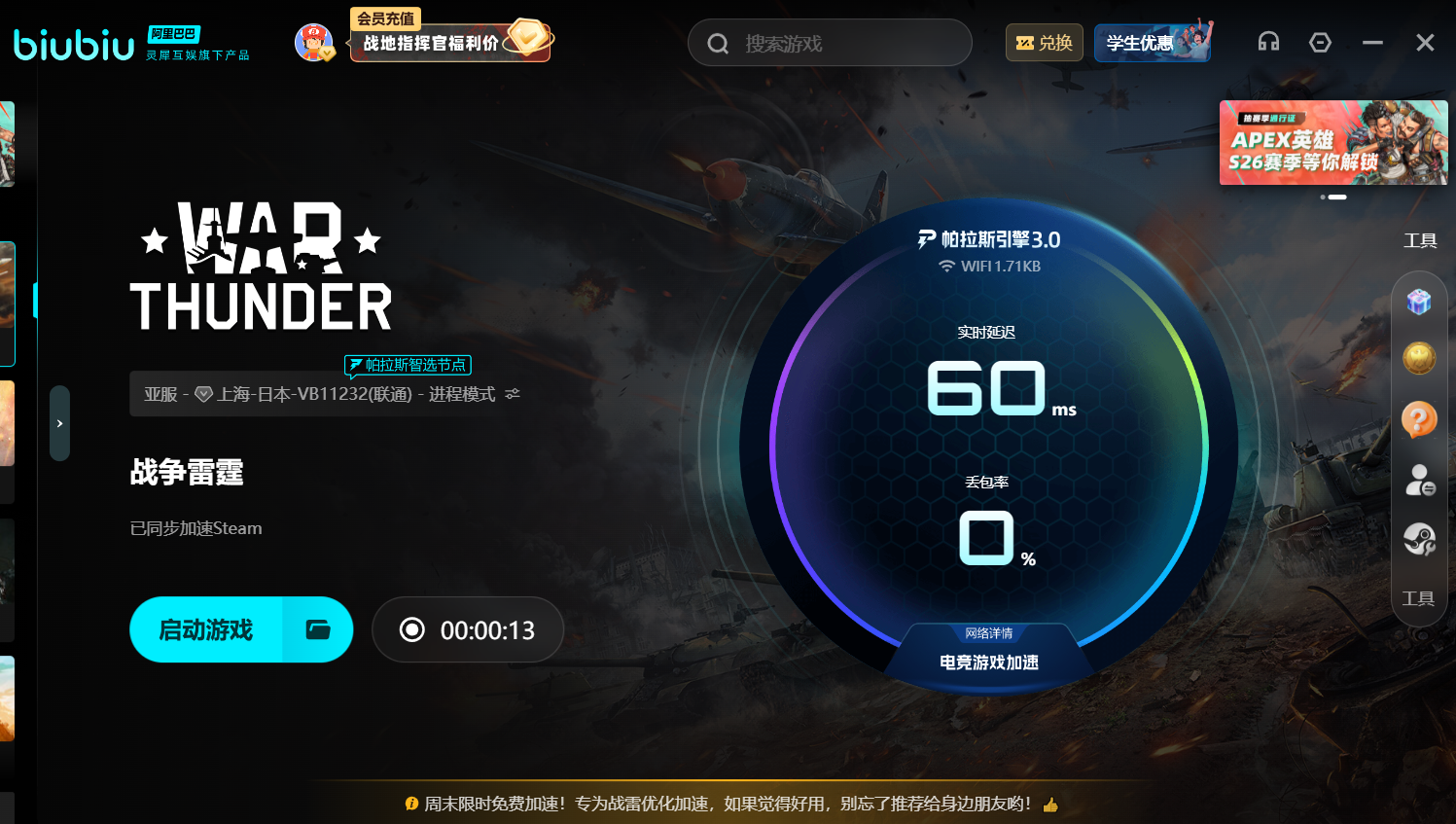 以上就是對戰(zhàn)爭雷霆兌換碼的介紹了,相信玩家們已經(jīng)了解了2025年最新的戰(zhàn)爭雷霆兌換碼以及biubiu加速器的強大功能。希望玩家們能夠充分利用這些資源,提升自己的游戲體驗,每一次俯沖、每一次瞄準,都將因穩(wěn)定加持而精準致命,享受戰(zhàn)爭雷霆帶來的樂趣。