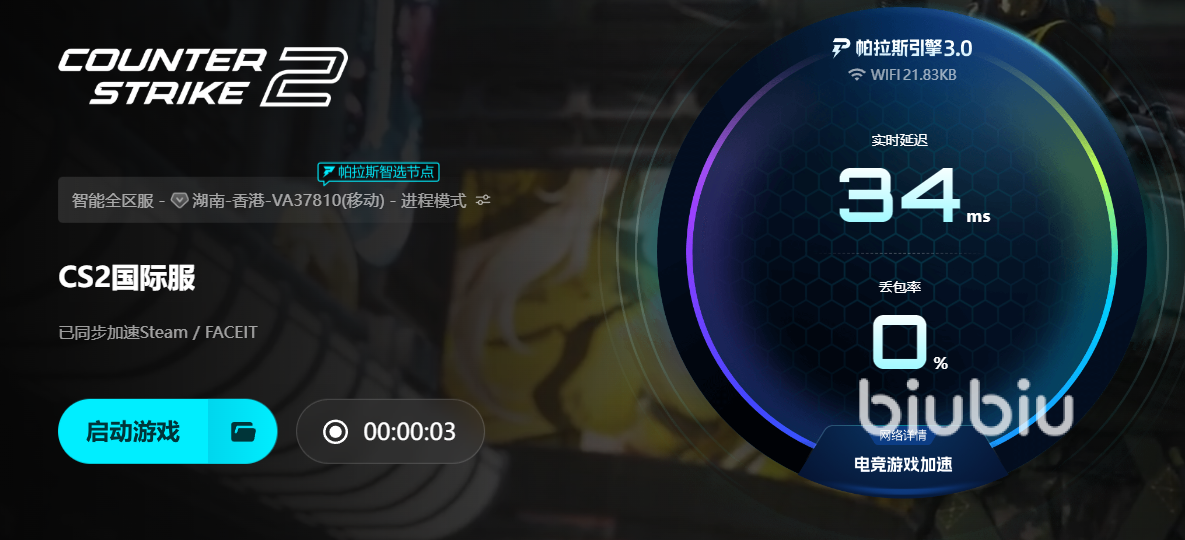 biubiu加速器的技術(shù)方案能從傳輸層面根治丟包問題。新注冊用戶可獲得24小時免費(fèi)加速,足夠在不同時段測試競技模式的丟包變化;輸入口令【biubiu不卡頓】還能額外兌換72小時,合計96小時的體驗(yàn)期,覆蓋從休閑匹配到排位賽的全場景。其搭載的帕拉斯引擎3.0采用動態(tài)多路徑傳輸技術(shù),在連接csgo服務(wù)器時,會同時建立3條不同路由的傳輸通道,當(dāng)主路徑出現(xiàn)丟包,0.2秒內(nèi)就能切換至備用通道,確保關(guān)鍵操作指令(如開槍、急停)的數(shù)據(jù)包不丟失。與冠軍選手Aixleft合作優(yōu)化的競技模式加速策略,進(jìn)一步提升了數(shù)據(jù)優(yōu)先級——在煙霧彈交火等數(shù)據(jù)包密集的場景,引擎會自動標(biāo)記射擊指令為最高優(yōu)先級,哪怕整體丟包率達(dá)到3%,核心操作的傳輸仍能保持穩(wěn)定。