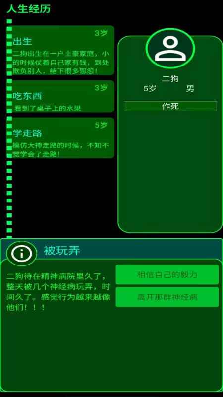 《人生自由選擇》在這兒你可以無限次的選擇不同的人生起點進行重開,其次在游戲里都設(shè)置了五花八門的內(nèi)容選項,都緊緊的圍繞著人物的結(jié)局去進行制定的,游戲中我們每個人將沒有任何思想包袱壓力,你可以在自己對于人生的規(guī)劃下,在過程中心之所向去進行選擇,游戲設(shè)定的情節(jié)有的發(fā)人深省,有的則令人開懷大笑。