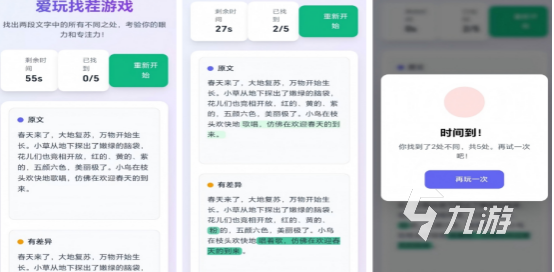 在人們的印象當(dāng)中,找茬游戲比較常見,大部分找茬游戲都是將兩個看似相同的圖片放到一起,尋找到其中不同之處。而這款找茬手游完全不同,涵蓋超多主題以及特色場景。不僅只是傳統(tǒng)的圖片找茬又推送出文字找茬模式,尋找出兩段文字當(dāng)中的不同之處,考驗?zāi)愕难哿σ约皩W⒘?。這樣的游戲非常適合正在上學(xué)的學(xué)生,學(xué)習(xí)到更多知識,增加識字量。