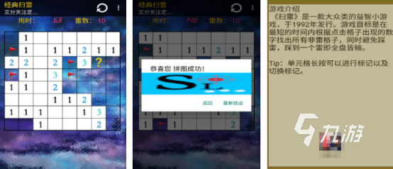 作為特別經(jīng)典的一款數(shù)字類型的手游,這里涵蓋了多樣化的數(shù)字和不同的雷區(qū),簡單的操作方式,只要通過點擊方塊的方式,就能成功尋找到帶有數(shù)字的方塊,但是在此同時還要及時避開雷區(qū),千萬不要觸碰雷區(qū),否則就會導(dǎo)致游戲失敗。其中還涵蓋了不同難度的等級,從新手到大師應(yīng)有盡有,能滿足不同年齡段人群的需求。