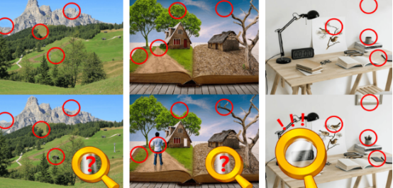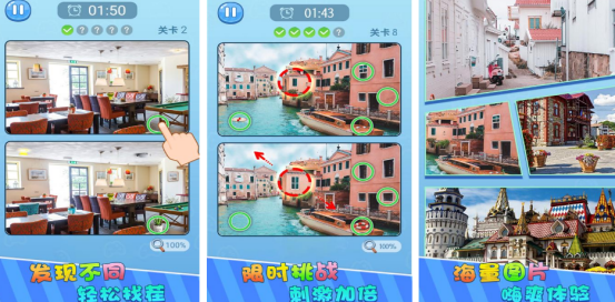 游戲不定期更新,目前已經(jīng)更新超過(guò)8000多關(guān),采用傳統(tǒng)的找不同玩法,在兩幅相同圖片當(dāng)中尋找到細(xì)微差異。初級(jí)關(guān)卡具有著比較明顯的差異,隨著進(jìn)度逐漸推進(jìn),難度會(huì)全面增加,玩家要具有極高的觀察力,這樣才有機(jī)會(huì)成功通關(guān)。在初級(jí)差異數(shù)量比較少,后期需要觀察各種細(xì)節(jié)變化,需要擁有極高的眼力。
