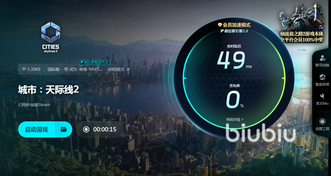 好了,上述便是城市天際線2卡死的全部?jī)?nèi)容,它作為專線級(jí)加速應(yīng)用,在保障用戶網(wǎng)絡(luò)傳輸線路方面穩(wěn)定而言還是很突出的,并且深度模擬和生動(dòng)運(yùn)作的經(jīng)濟(jì)系統(tǒng)結(jié)合,得到了很多玩家的認(rèn)可,去選用biubiu這類軟件優(yōu)化也十分重要,如此可確保大家線路傳輸方面的穩(wěn)定哦。