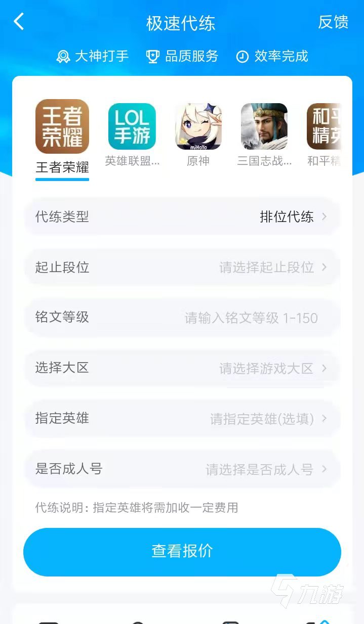 對(duì)于部分想要發(fā)布代練需求的玩家,那么可以直接進(jìn)入到代練專區(qū),然后進(jìn)入到極速代練頁面。在該頁面填寫好自己的需求之后就可以將其發(fā)布出去,相關(guān)的游戲大神就可以選擇接單,玩家們也將順利的解決游戲內(nèi)一切問題。當(dāng)然,接單的傭金玩家也是可以自己根據(jù)難度來進(jìn)行設(shè)置的。