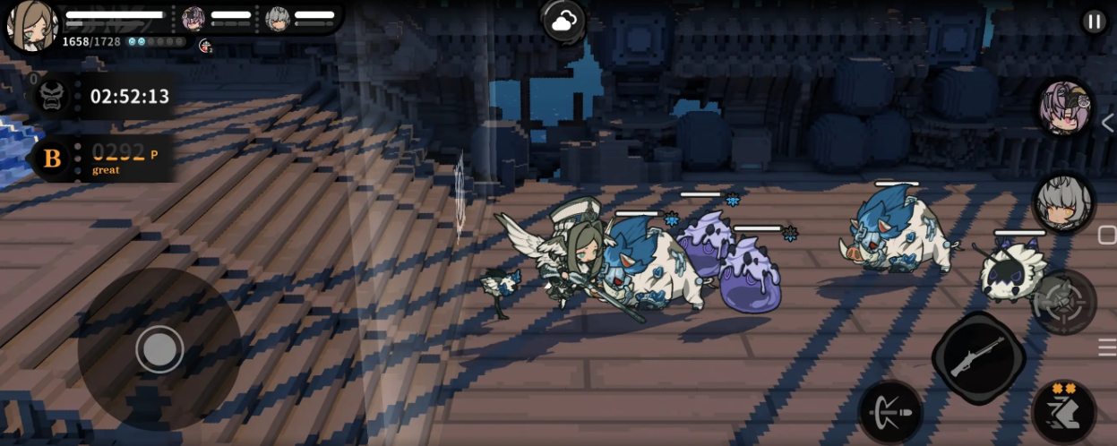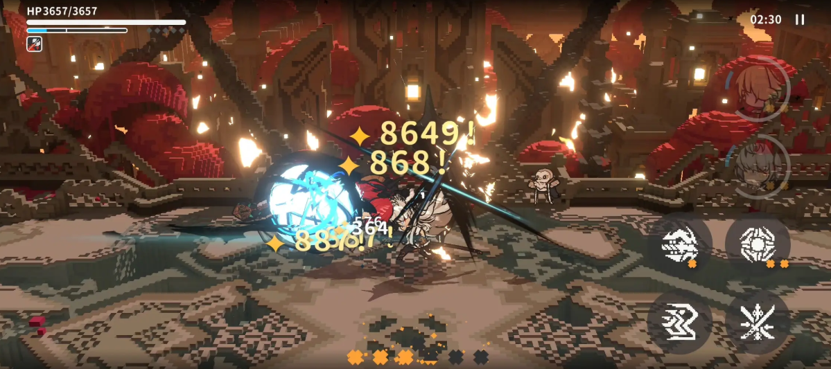 玩家將會扮演不同職業(yè)的角色去挑戰(zhàn)多樣的關(guān)卡,每個關(guān)卡中有各種怪物與障礙,需要玩家靈活運(yùn)用角色技能與操作來通關(guān)。角色之間的技能差異比較明顯,不同職業(yè)在攻擊方式、防御方式、機(jī)動性等方面各有千秋。