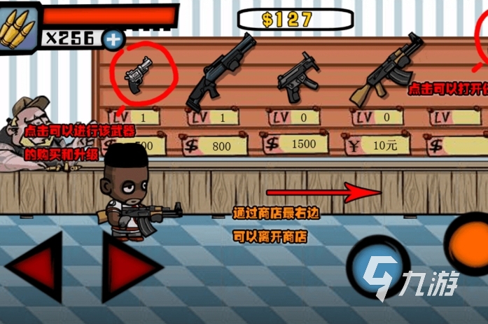 在恐龍病毒泄露的背景下,你將扮演一名黑人小哥前往武器店購(gòu)買武器對(duì)抗外面的感染者,它里面的角色建模非常具有浮夸風(fēng)格,在與敵人對(duì)攻的情況下,卻能呈現(xiàn)出極致的視覺(jué)沖擊,與建模本身略顯呆萌的模樣形成強(qiáng)烈對(duì)比,同時(shí)里面的屬性條非常簡(jiǎn)單,只有血條,子彈和金錢三項(xiàng),您只需不斷殺敵探索獲得金錢,然后規(guī)避傷害,傾瀉子彈保證自己血條的健康即可。