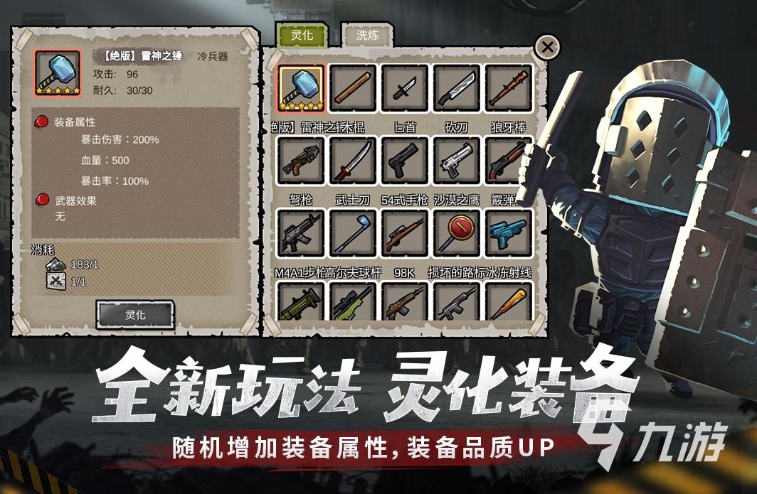 末日題材橫版射擊玩法,擁有多樣化的廢土風(fēng)格武器,包括砍刀,狼牙棒和各式各樣的槍械等等,不同武器之間的屬性以及效果都不一樣,你還可以通過(guò)獨(dú)特的靈化功能將它們逐個(gè)增強(qiáng)成自己心目中的強(qiáng)度,此外,一些諸如雷神之錘和高爾夫球桿的另類裝備也都能在這里找到,它們?cè)溨C的攻擊方式能夠讓你在射擊之余體驗(yàn)一把放松的視覺(jué)幽默。
