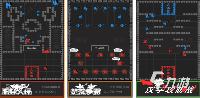 漢字攻防戰(zhàn)是款呈現(xiàn)出特殊漢字畫面的策略類游戲,本作用漢字來表示各種各樣的兵種和地形,比如兵字就可以自由移動(dòng)戰(zhàn)斗,同時(shí)也要保護(hù)好用漢字展現(xiàn)的大本營,這種注重策略元素的漢字互動(dòng)游戲極為罕見,攻防互動(dòng)的游戲設(shè)定也為本作潤色不少,新奇的漢字互動(dòng)玩法也具備著不錯(cuò)的新鮮感。