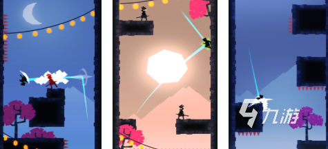 畫風(fēng)比較高清,忍者會(huì)在不同的主題下完成對(duì)打。主題風(fēng)格比較有趣,大多數(shù)都會(huì)涉及到一些塊狀的高臺(tái)。操作比較簡(jiǎn)單,玩家操控忍者進(jìn)行前空翻和后空踢都是可以的,必要時(shí)候還可以使用機(jī)關(guān)槍等武器。在其他元素加入后,忍者還要在路途中隨機(jī)獲得更多數(shù)量的金幣。
