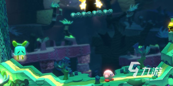 異次元空間英雄同盟,這個是在通關(guān)故事模式之后開啟的新模式,卡比出現(xiàn)在了異次元的空間展開冒險,這是該模式下獨有的一種元素,1號卡比和盟友們一起通過“接力”的形式不斷交替使用能力,然后解開一個又一個裝置,收集那些分散在不同空間里的“盟友之心”。