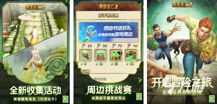 《神廟逃亡2》是一款超經(jīng)典的跑酷手游。游戲?yàn)橥婕掖蛟炝艘粋€(gè)充滿玄幻的神廟跑酷賽道,你要在賽道上快速的跑酷,脫離身后追擊的怪物,跑酷賽道上會(huì)有各種障礙設(shè)置,你需要快速的反映操控人物躲避障礙,同時(shí)你也有機(jī)會(huì)在跑酷的過(guò)程中撿到有利的道具,這些道具有不同的效果且都是可以免費(fèi)獲得的,游戲的自由度非常高,你能在這里展開(kāi)一場(chǎng)冒險(xiǎn)刺激的跑酷之旅。