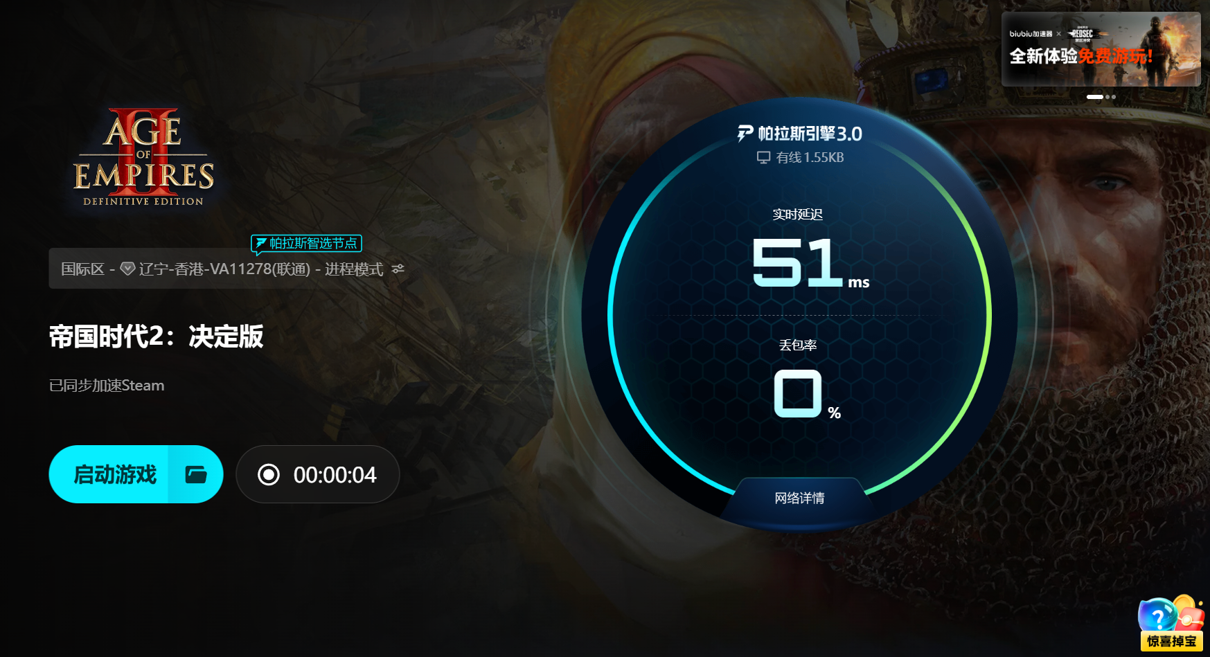 加速開啟后的變化立刻可感。啟動(dòng)器不再卡在半透明黑屏,主菜單迅速拉起,進(jìn)入房間成功,地圖載入不再回彈桌面,戰(zhàn)役切換關(guān)卡更順,卡頓引發(fā)的判定錯(cuò)位明顯減少。帝國(guó)時(shí)代2的樂(lè)趣在于經(jīng)濟(jì)與軍備的平衡,在于攻防節(jié)奏的拿捏,黑屏與閃退只會(huì)把精心排布的運(yùn)營(yíng)與進(jìn)攻撕碎。穩(wěn)定連接能讓建塔卡點(diǎn)的時(shí)機(jī)再次精準(zhǔn),讓快攻點(diǎn)兵的線路重新清晰。當(dāng)路徑被拉直、當(dāng)畫面連續(xù)流動(dòng),偵查的馬蹄聲與攻城的轟鳴就能回到應(yīng)有的位置。