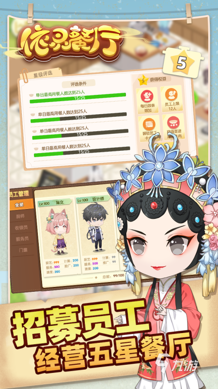這是一款卡通風(fēng)格的經(jīng)營游戲,這里有很多的菜品在等待玩家的品嘗,用開通的方式來經(jīng)營餐廳,這個(gè)餐廳對(duì)員工有很強(qiáng)的要求,會(huì)對(duì)員工有劃分,前期經(jīng)營有限,只能招募普通的員工,隨著經(jīng)營原來越好,菜品在逐步的解鎖,有了招募高級(jí)員工的可能,也各種前期不能做的,餐廳也在以更好的經(jīng)營等待著食客的品嘗。