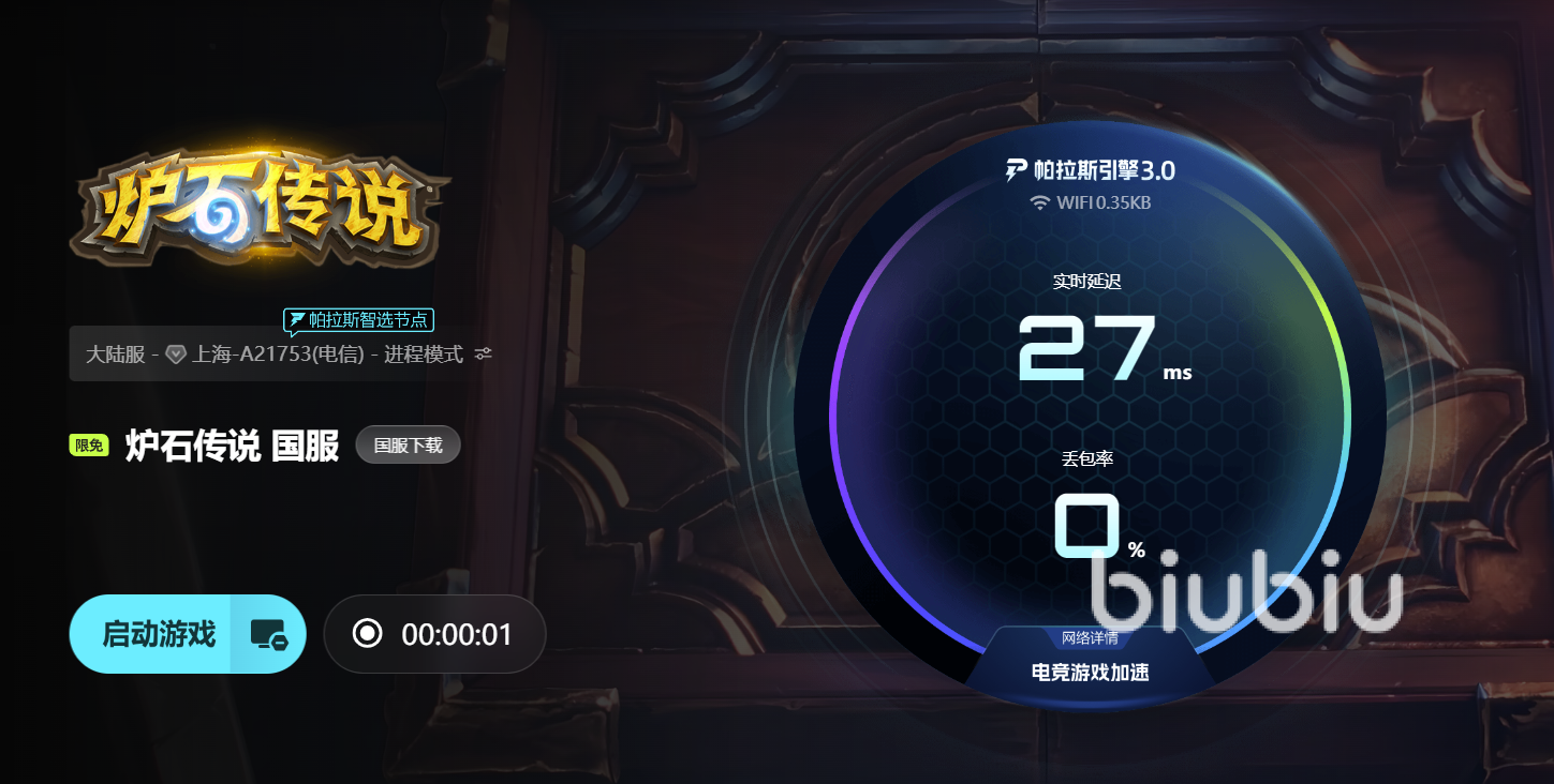 為了讓大家能夠安心沖分,biubiu為所有用戶(hù)準(zhǔn)備了實(shí)用福利,現(xiàn)在帶著【biubiu不卡頓】,這句口令就能夠直接領(lǐng)取到三天的會(huì)員免費(fèi)體驗(yàn)時(shí)間。如果你是第一次使用的新用戶(hù),那么在注冊(cè)登錄之后,還能得到平臺(tái)贈(zèng)送的24h免費(fèi)加速時(shí)間;總計(jì)長(zhǎng)達(dá)4天。這段時(shí)間足以覆蓋周末沖分黃金期,讓你無(wú)需擔(dān)憂(yōu)網(wǎng)絡(luò)意外,專(zhuān)注提升段位。整個(gè)加速過(guò)程也極為簡(jiǎn)便:打開(kāi)biubiu,搜索“爐石傳說(shuō)”,一鍵加速,系統(tǒng)自動(dòng)完成節(jié)點(diǎn)匹配與后臺(tái)優(yōu)化,無(wú)需手動(dòng)設(shè)置,即刻享受穩(wěn)定連接。