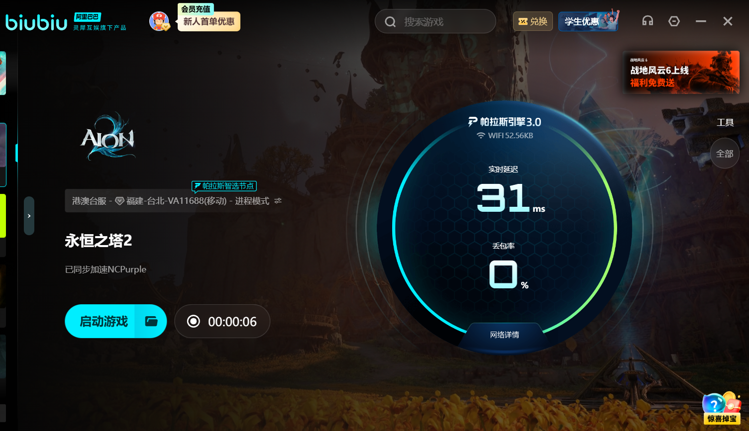 目前新玩家入局更有豐厚福利,讓你省心省力,注冊立刻激活專屬福利禮包24小時,記得在福利兌換區(qū)輸入專屬口令【biubiu不掉線】秒得額外72小時,總計可享整整4天免費暢快加速!告別下載煩惱,極速奔赴亞特雷亞戰(zhàn)場。