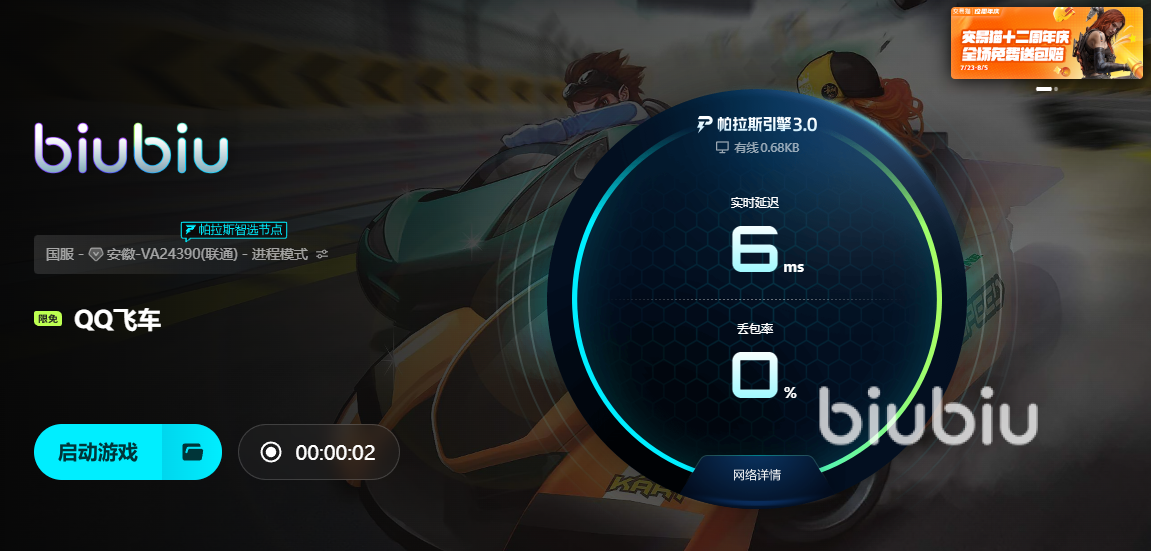 并且,biubiu加速器針對《QQ飛車》網絡方面進行了實時的動態(tài)調整,不僅支持一鍵啟動加速,還能自動識別當前游戲版本并調整線路匹配等參數的設定。