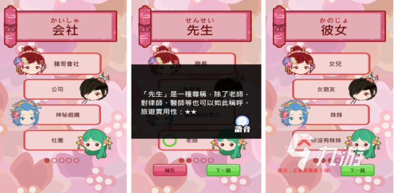 采用卡通的風(fēng)格,渲染出了視覺性極強(qiáng)的畫面感。這里呈現(xiàn)出來的日語漢字類型特別豐富,其中收錄了上百多個(gè)不同的實(shí)用詞匯,在玩游戲的過程中就能夠讓孩子們學(xué)到更多的知識(shí)。就連在以后出國旅游或者學(xué)習(xí)知識(shí)時(shí)都有較大的幫助,還涵蓋了豐富的關(guān)卡內(nèi)容,每個(gè)關(guān)卡中都會(huì)呈現(xiàn)出5個(gè)日語漢字的題目。當(dāng)玩家完成任務(wù)闖關(guān)之后,就可以解鎖更高難度的關(guān)卡。