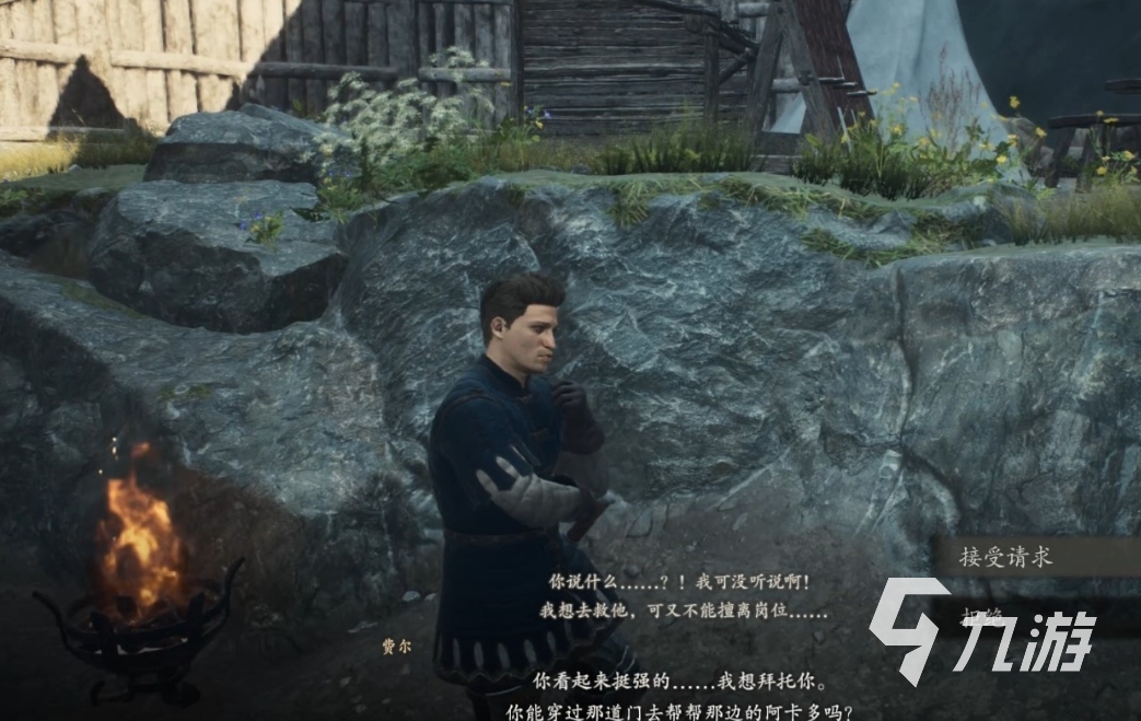 在營地中,玩家在簡易旅店中休息并準(zhǔn)備通過南門離開時,路過門口就會接到了一項支線任務(wù)“新兵的苦難”。