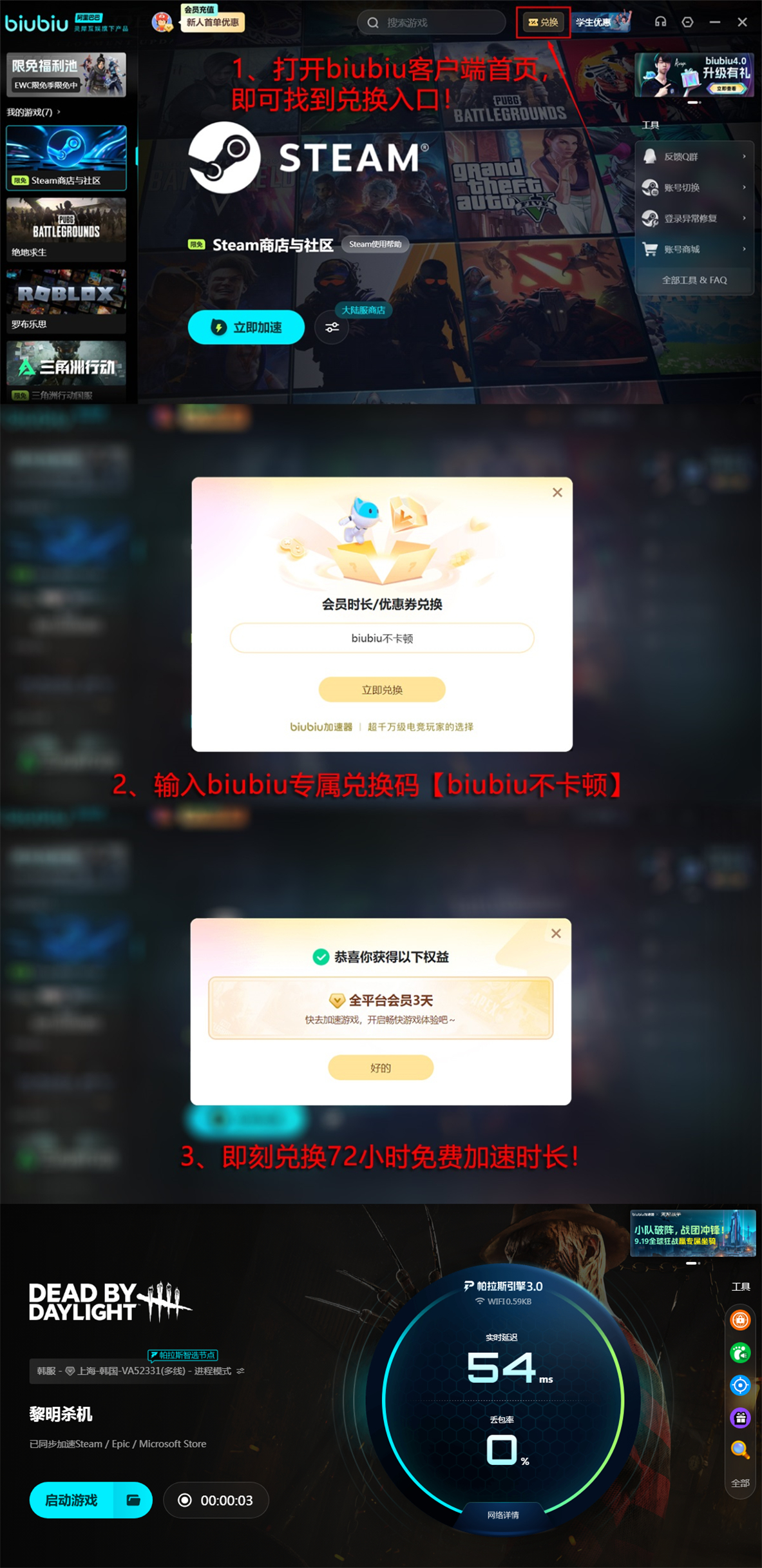 如果想要在新資料片中更流暢地進(jìn)行戰(zhàn)斗,biubiu加速器必不可少?,F(xiàn)在注冊新biubiu號立得24小時(shí)免費(fèi)加速時(shí)長,每個(gè)號還能使用一次兌換碼【biubiu不卡頓】,領(lǐng)取3天加速時(shí)間。性能方面,biubiu在進(jìn)行技術(shù)革新的時(shí)候,邀請了冠軍選手Aixleft,將引擎升級到了帕拉斯3.0,所以加速流暢。在推出的新材料片中,引入了新殺手克拉蘇和新逃生者維伊邦雅淑。并推出了專屬外觀物品,對很多角色也進(jìn)行了重做。