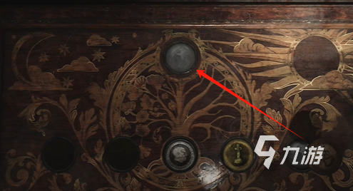 游戲里面三枚硬幣的謎題,位置分別如下,第一組男人(銀)、空洞、女人(金)、空洞、花朵(銅背面)。第二組位置變換,是空洞、劍(銀背面)、空洞、女人(金)、花朵(銅背面),第三組就是空洞、空洞、男人(銀)、墓碑(金背面)、蛇(銅),最后第四組,我們把蛇移動到第六個空洞就行了。