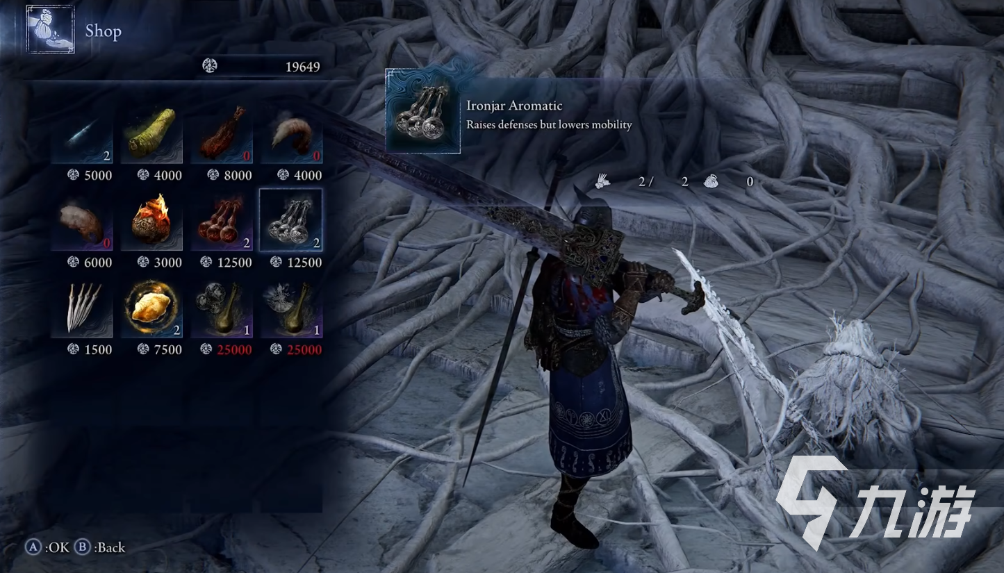 第三天挑戰(zhàn)關底BOSS前盡量刷至14級,并通過賜福點重置技能點優(yōu)化配裝,同時可在裝備欄攜帶附帶屬性增益的武器(如「黃金樹之誓」觸媒),即便不使用也能獲得效果,戰(zhàn)前還可在商人處購買「毒壺」「圣屬性箭」等針對道具。