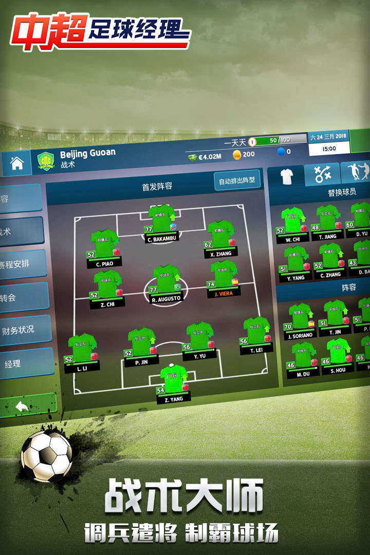 《足球經(jīng)理》游戲中,玩家們可針對球員訓練中,對他們的能力進行分析,通過訓練后玩家需要從不同的方向,對隊員進行觀察,出現(xiàn)問題就及時訓練加強。 同時游戲之中,玩家還可以為隊員們定制獨特的足球服裝。游戲的上手操作也非常簡單 只需采用一件裝備按鈕,就可以將隊員們的各個狀態(tài)恢復到最滿。在賽場上,玩家也可以對單獨的球員作對應戰(zhàn)術(shù)的制定,游戲的體驗毫不遜色。