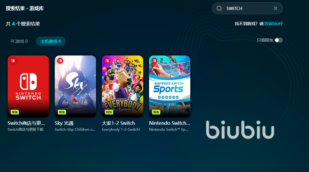 同時,biubiu使用起來的簡便程度上也是非常高的,對于廣大用戶而言,只需在首頁輸入心儀的游戲名,那么各位就能看到對應(yīng)的專區(qū),像switch便是其中之一,并且玩家開啟加速后,會針對其運行的游戲來實現(xiàn)同步優(yōu)化,這樣也就不用在頻繁去使用其他的加速工具,輕松即可感受到軟件帶來的穩(wěn)定加速效果。