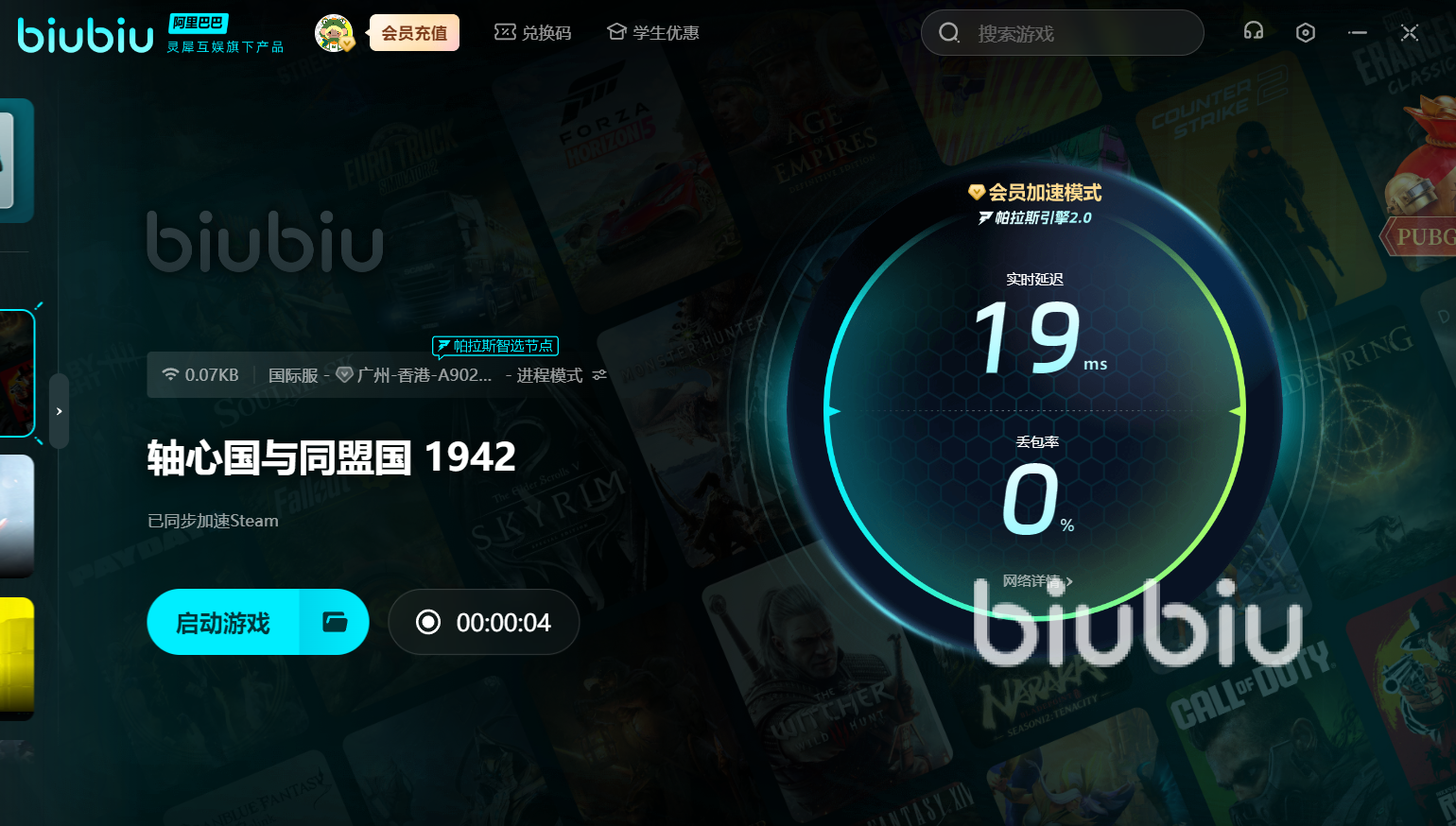 使用方法非常簡單,進入首頁后直接搜索“軸心國與同盟國”,默認就是國際服,biubiu會智能匹配最適合的加速節(jié)點,自動開啟加速,無需排隊以及額外下插件,直接享受流暢的游戲體驗。