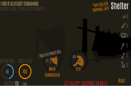 模擬野外生存的此手游,它是屬于畫面比較簡(jiǎn)約,你需要合理的支配時(shí)間,依靠獲取的食物來存活下去,提供了操作的工具,由于每一個(gè)工具之間都有不一樣的聯(lián)系,所以正確的組合使用以后,可以達(dá)到非常好的效果。還設(shè)置了超多的地形,無論你是想要在野外環(huán)境當(dāng)中享受生存游戲的樂趣,還是森林以及城市等,都需要有一定的思考能力。