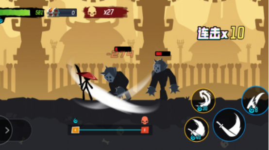 簡(jiǎn)約的火柴人角色,卻在畫面中將自己無(wú)窮的力量展現(xiàn)出來(lái),屏幕的上方會(huì)有相應(yīng)的生命值展現(xiàn)。隨時(shí)觀察對(duì)方的生命值,每次釋放大招時(shí),對(duì)方的生命值就會(huì)有所下降,直至歸零后,對(duì)方就會(huì)失去生命。屏幕右下角都會(huì)有相應(yīng)的出拳或者踢腿等等,20多個(gè)不同的角色,等大家隨意使用。在遇到強(qiáng)大的boss時(shí),即可釋放出快速的連招技能,分?jǐn)?shù)值快速翻倍。