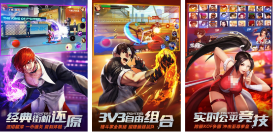 Snk正版授權(quán),完美傳承了拳皇系列中的經(jīng)典人物角色??蓪?shí)時(shí)競(jìng)技,參與到kof爭(zhēng)霸中,精美的娜可露露等多位優(yōu)秀的格斗家,在這里全面展現(xiàn)。這些格斗家都有獨(dú)特的優(yōu)勢(shì)以及各自的技能體系,組建超強(qiáng)戰(zhàn)隊(duì)后,加入3v3對(duì)戰(zhàn)模式中。