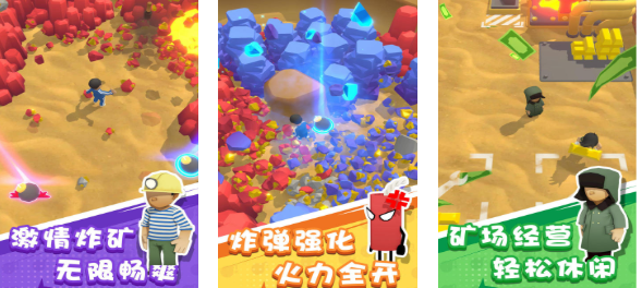 本作是首款采用了模擬煙花進(jìn)行爆破互動的挖礦游戲,將燃放煙花的設(shè)定跟經(jīng)營礦場的玩法進(jìn)行結(jié)合,內(nèi)容呈現(xiàn)輕松休閑也有著超多礦洞地圖可以解鎖,扮演挖礦工人使用煙花開礦的特殊體驗(yàn)別具一格,三維立體且卡通生動的既視感更受歡迎,充滿激情的燃放煙花采礦體驗(yàn)是其他游戲不具備的。