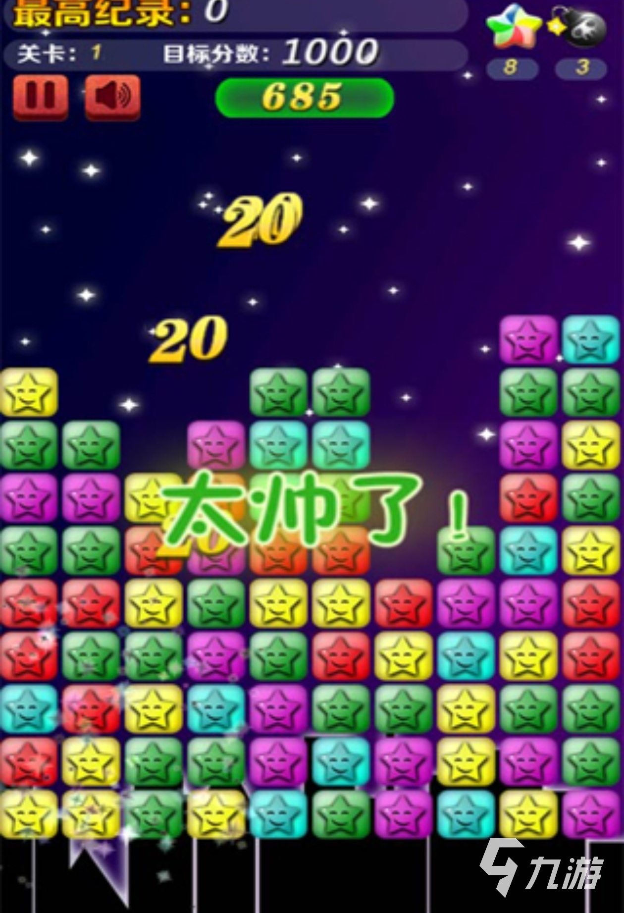 首先,游戲中的消星星關(guān)卡是有著目標(biāo)分?jǐn)?shù)來讓玩家們努力的。其次,像吸鐵石這樣的道具在消星星時會爆發(fā)出巨大的效果。有趣的是,玩家能在奇妙消星星游戲中隨意暫停消除對局,而且音樂的奏響也是很清脆且可以時刻關(guān)閉的。最后,分?jǐn)?shù)越高你的星星等級也會隨之上升的啊。