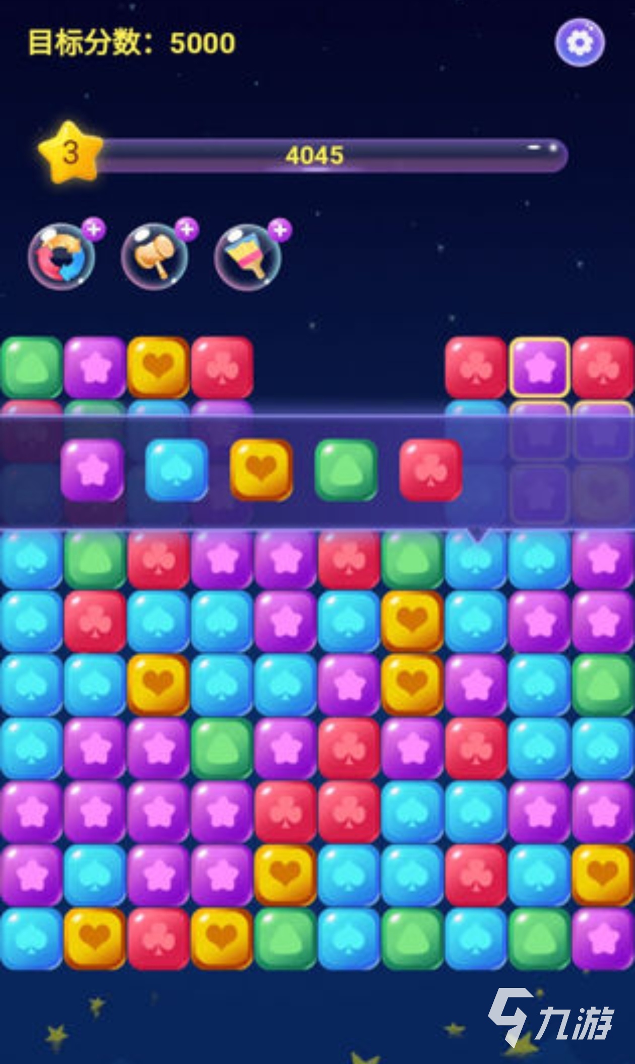 玩家在關(guān)卡里只能瘋狂的對指定的星星進(jìn)行消除,其中的消除機(jī)制是不需要不同的星星的,而且游戲中還加入了商店系統(tǒng)來給玩家們購買道具,這也增進(jìn)關(guān)卡的消星星通過率,就連星星的顏色也不止兩三種,它們?nèi)缤屎绨愕奈宀拾邤?。此外,其中的星星得分機(jī)制也會根據(jù)消除的連接程度就行變化。