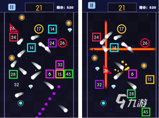 它就是發(fā)射小球射擊數(shù)字來幫助玩家獲得分數(shù),無論是哪個年級或者是其他的小朋友,都可通過這款老受記憶的游戲感受快樂。只需要手指操控的方式就能體驗所有的游戲,每個磚塊和小球產(chǎn)生了碰撞以后,會具有反彈的動感。所以在玩的時候會感到特別的開心,通過瞄準以后松開手指,玩家就能完成發(fā)射。