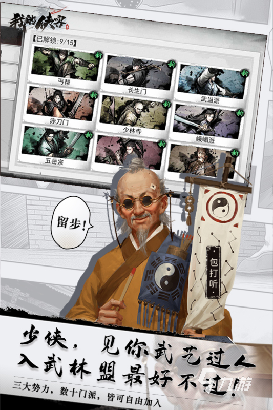 《我的俠客》武俠世界人生百態(tài)貫穿了整個(gè)游戲的宗旨,游戲內(nèi)有著個(gè)性獨(dú)特的npc,每個(gè)npc之間都有著令人意想不到的關(guān)系以及故事情節(jié),游戲中供我們加入的門(mén)派有豐富的選擇性,玩家可以學(xué)習(xí)的獨(dú)具一格的門(mén)派技藝,更能夠和其他游戲玩家進(jìn)行比武決斗,甚至你可以直接向高手發(fā)起踢館,以此來(lái)一戰(zhàn)名揚(yáng)天下。