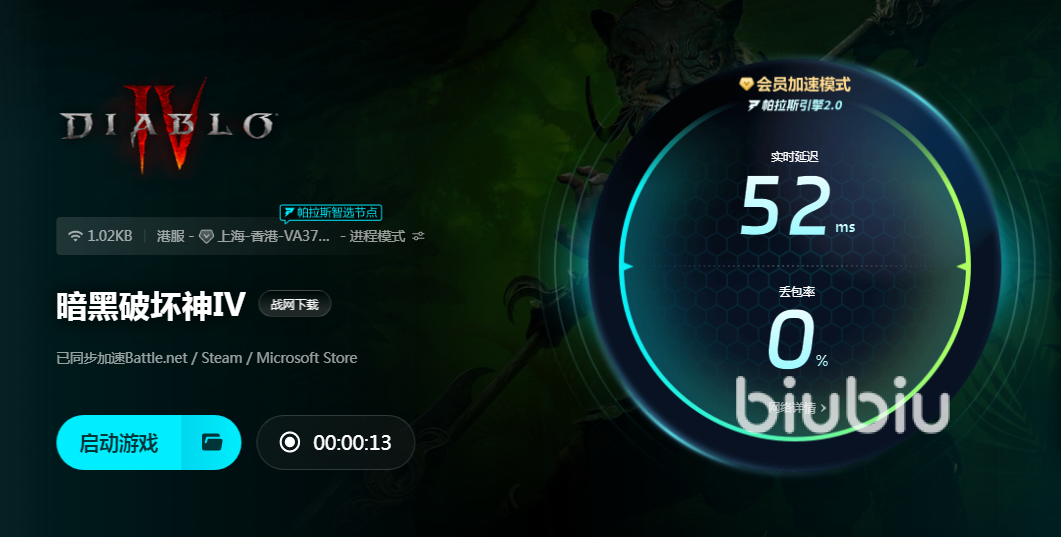 要想解決這個問題,使用biubiu加速器是非常便捷的方式,biubiu具有游戲資源豐富,加速效果強(qiáng),附加功能多,價格優(yōu)惠等一系列優(yōu)勢。大家輸入暗黑破壞神之后就可以直接找到很多游戲選項(xiàng),按照自己需要的去點(diǎn)擊進(jìn)行優(yōu)化就可以了,搜索到這些選項(xiàng)都具有很好的加速服務(wù),點(diǎn)擊之后會進(jìn)入到加速頁面中,然后通過此頁面去運(yùn)行客戶端,其他的就都不用再操心了。Biubiu現(xiàn)在使用的帕拉斯引擎2.0,是屬于自主研發(fā),具有連接速度快,響應(yīng)及時等一系列優(yōu)勢。Biubiu在界面方面也很簡潔,主要功能一目了然,大家點(diǎn)擊上面的鏈接下載安裝之后直接就能上手使用?,F(xiàn)在新注冊的號還直接送三小時會員時間,能夠讓新人免費(fèi)試用。另外還有一項(xiàng)是兌換碼福利也要牢記,兌換碼是【biubiu不卡頓】,可以得到72小時會員時間,這個兌換碼每個號都能用一次。