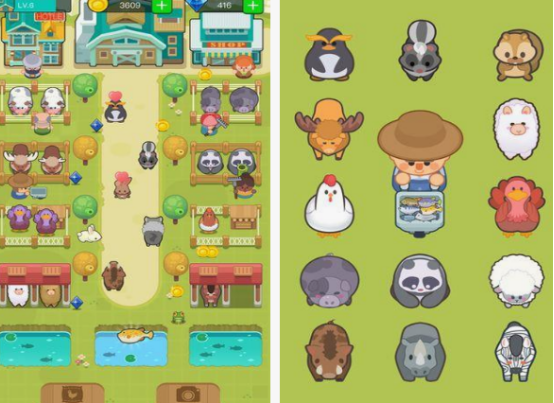這里并沒(méi)有特別復(fù)雜的操作方法,而是利用手指點(diǎn)擊屏幕上的一些地方以后,就能在模擬農(nóng)場(chǎng)類(lèi)型的游戲當(dāng)中解鎖土地。有可愛(ài)以及像素的風(fēng)格,想要建設(shè)專(zhuān)屬農(nóng)場(chǎng)的話,通過(guò)一切從零開(kāi)始,用非常簡(jiǎn)單的方法就能做到。而在養(yǎng)殖小動(dòng)物的時(shí)候,可以看到除了常見(jiàn)的家禽,還能夠看到其他的小動(dòng)物,包括大熊貓、河馬等。