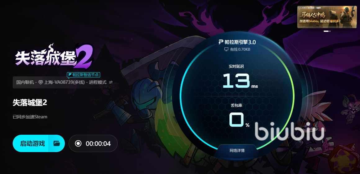 所以,無論失落城堡2閃退怎么解決,大多數(shù)情況下,最終還是以解決網(wǎng)絡(luò)為主,實際上,行業(yè)有調(diào)查發(fā)現(xiàn),有7成多的游戲問題都是網(wǎng)絡(luò)造成的,這里面不僅有閃退,還有延遲 ,卡頓等常見問題,所以大家一定要記得安裝一個biubiu加速器哦!