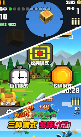它不是那種單調(diào)的突突突射擊游戲,玩家進(jìn)去手里就有把槍了,這時(shí)候就得思考怎么讓這把槍發(fā)揮出大威力,速度要快而且子彈得省著用。可以去游戲里的商店逛逛,那里有各式新武器等著玩家挑選,還有新功能等玩家升級(jí)。游戲有那種三顆心用完就GG的普通模式,也有經(jīng)典模式,雖然生命和子彈都管夠,但時(shí)間可是不等人的。還有街機(jī)模式,時(shí)間就是金錢,得爭(zhēng)分奪秒。