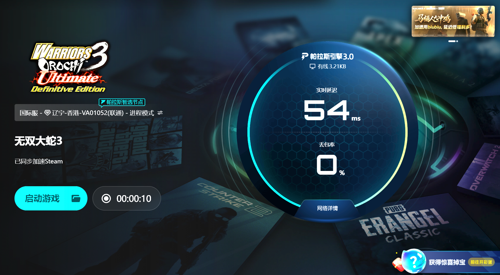 想要徹底解決掉幀問題,必須讓數(shù)據(jù)傳輸路徑變得穩(wěn)定順暢。biubiu加速器通過Steam通用加速模式為無雙大蛇3終極版提供優(yōu)化支持,它能智能分析當前網(wǎng)絡(luò)狀況,將數(shù)據(jù)繞過高延遲與丟包節(jié)點,重新建立直連路徑。當信號傳輸更短更穩(wěn),服務(wù)器響應(yīng)更快,畫面幀率自然回歸穩(wěn)定。注冊賬號后即可獲得二十四小時免費加速時長。在客戶端首頁輸入口令【biubiu不卡頓】所有用戶還能額外領(lǐng)取七十二小時,讓戰(zhàn)斗節(jié)奏持續(xù)多天保持流暢不卡。