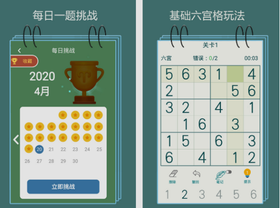 這是一年級的小朋友都可完成挑戰(zhàn),不過卻有一定難度,以九宮格數(shù)獨玩法為主的。你需要在每次闖關的時候,根據(jù)九宮格的數(shù)獨里面填寫1~9的數(shù)字,雖然并不需要按照順序排列,不過卻由于在小宮格在外邊還有大宮格,保證每行每列9個數(shù)字都不會重復的情況下,玩家才能完成相應的任務,所以在填寫的時候也要掌握相應的技巧。