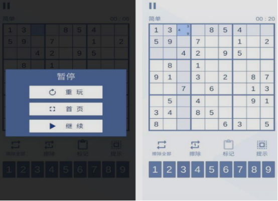 這款的整體風格屬于比較簡約,以黑白這樣的顏色為主,并沒有太多的色彩,不過在玩法上,依舊與九宮格數(shù)獨是保持一樣的??瓷先ヒ诿恳粋€方格里面,填入每一個關卡當中要求的數(shù)字,其中在九宮格當中就是以1~9這樣的數(shù)字為主,如果是六宮格的話,主要就是以1~6這樣的數(shù)字為主,不能夠在每行每列當中出現(xiàn)重復的。