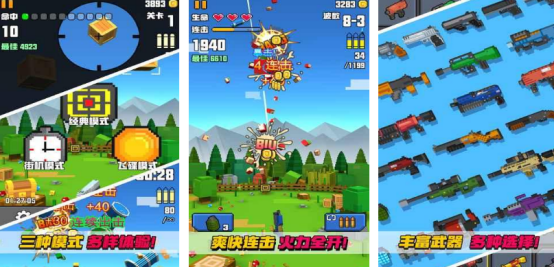 2d的像素畫面,以及刺激的射擊玩法結(jié)合在一起,在空中將會不斷降落出各種物品,可通過連續(xù)射擊的方式將所有物體徹底擊毀,在連擊之后也會進(jìn)入狂暴的狀態(tài),在此狀態(tài)之下,擊敗物體之后也能獲得雙倍的金幣。操作方式特別簡單,利用單只手就能順利完成射擊的任務(wù),還有14把來自于世界各地著名的槍械,可通過收集以及使用的方式將物品徹底擊碎。