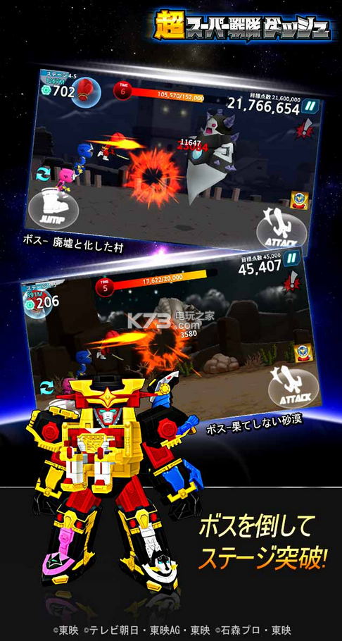 《超超級(jí)戰(zhàn)隊(duì)沖刺》每一個(gè)機(jī)甲英雄都具有著震驚四座的動(dòng)作模組設(shè)計(jì),而且制作組又引入了強(qiáng)化功能,在這里你將操作著不同的機(jī)甲成員,在節(jié)奏高速的關(guān)卡中,與眾多群魔亂舞一般的boss進(jìn)行交手,另外游戲還拓展出了各種激情四射的對(duì)決舞臺(tái),設(shè)計(jì)的操控機(jī)制,更是可以實(shí)現(xiàn)三個(gè)英雄同步性的釋放技能進(jìn)行作戰(zhàn)。
